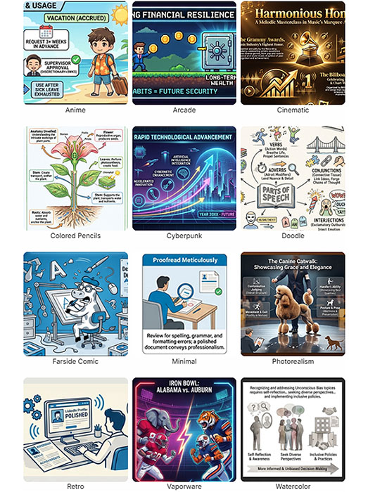 Choose from 12 diverse, ready-to-use styles. Perfect when you want something polished and proven, fast. Just pick one and go.